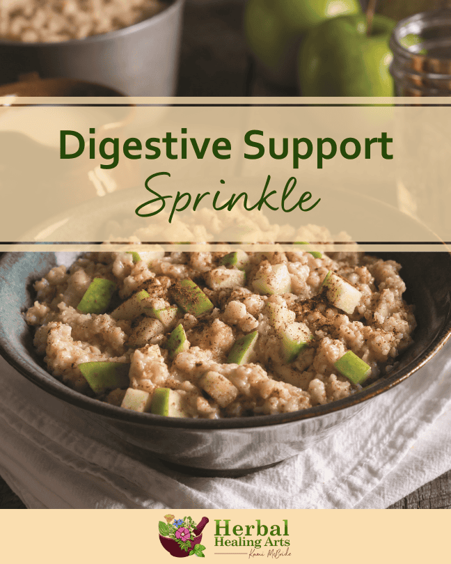 Herbal sprinkles are one of the simplest and most satisfying herbal kitchen staples that you can use to incorporate more herbs into your meals. We always have Digestive Support Sprinkle to put on toast, hot cereals, or to mix into yogurt.