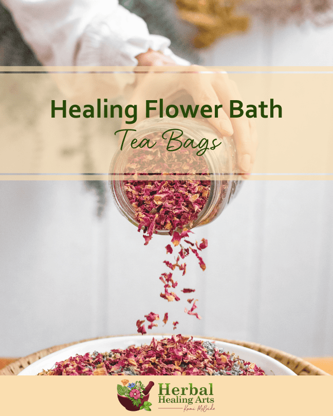 Bathing with herbs is a powerful therapy that we can easily incorporate into our busy lives. Everyone washes with water, and it is not too much extra effort to add some healing herbs to the routine, like my healing flower bath tea bag recipe. These herbal bath bags make great DIY gifts, too!