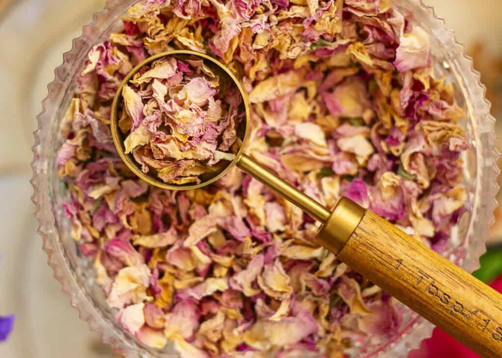 When using fresh herbs and flowers, I put different ones in my bath depending on the season and what I have growing in my garden. Check out my article on How to Make a Healing Garden Bath to learn more about using fresh herbs for bathing.