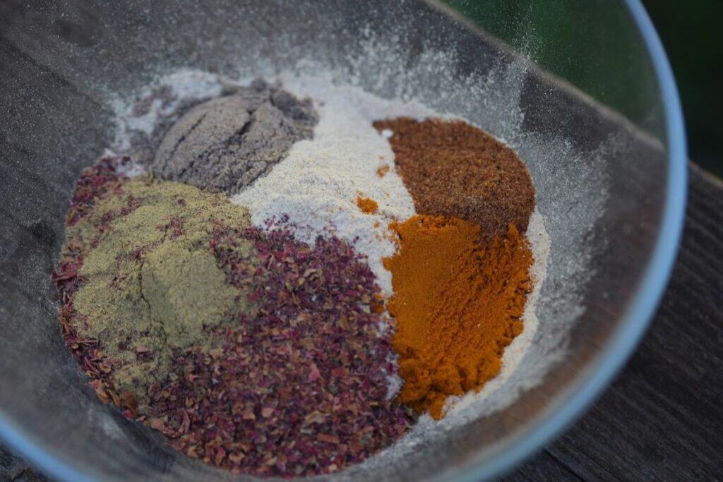 - 1 tbsp powdered red rose petals