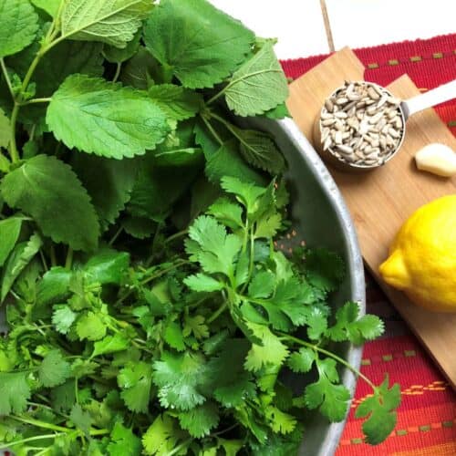 Lemon balm is a great digestive aid, full of enzymes and anti-oxidants. Adding this pesto to any dish will help you with digestion, which frees up your energy for what you love to do in life.