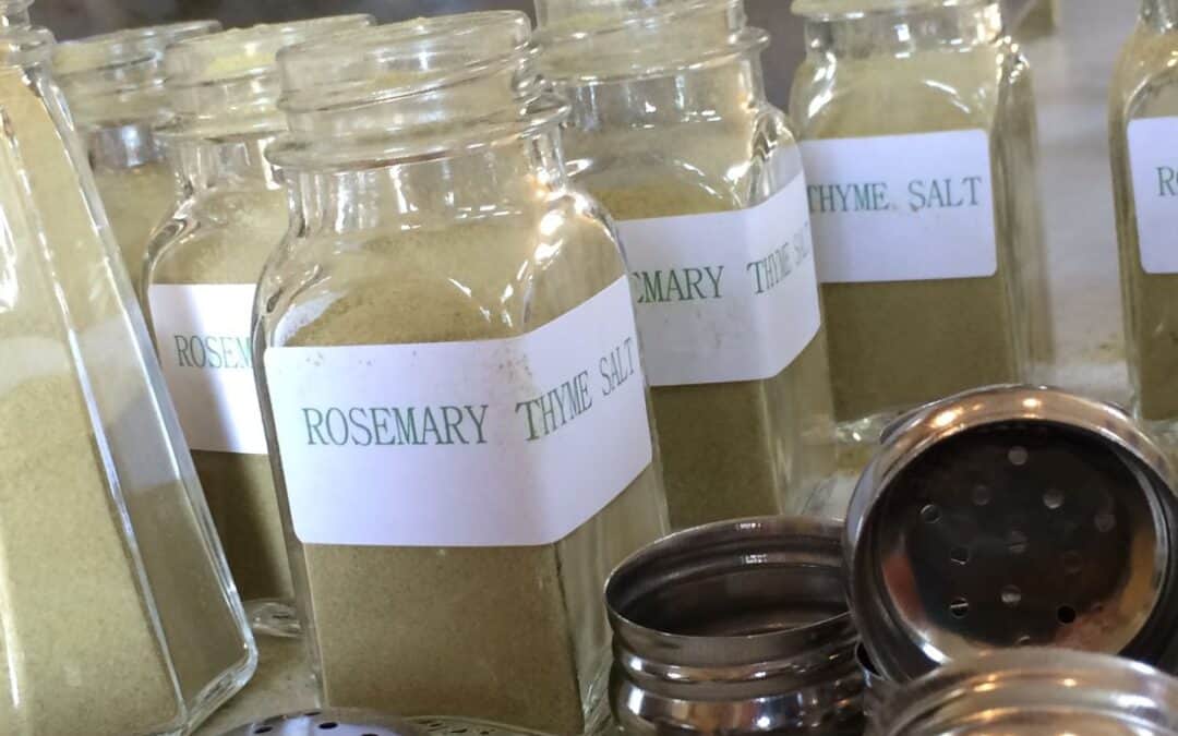 We sprinkle this Rosemary Thyme Salt on salads, veggie dishes, soups and it’s also yummy on just about any grain or potato dish. Just use it like you would normally use plain salt. One of The Herbal Kitchen owners said her favorite way to use Rosemary Thyme Salt is on toast with almond butter. I never would have thought of that! I would love to hear what recipes you use it in.