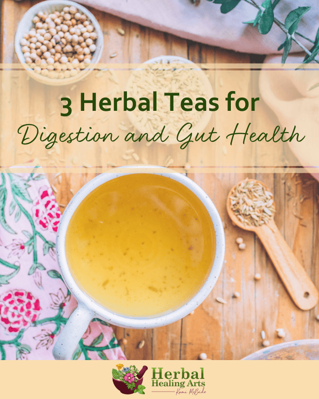 One of my favorite teas for digestion, cumin, coriander, and fennel tea helps with bloating, indigestion, intestinal spasms, gas, and nausea. This trio of aromatic and carminative herbs can also help relax a nervous, upset stomach. And it’s great for children with belly aches, sore tummies, and mild constipation.